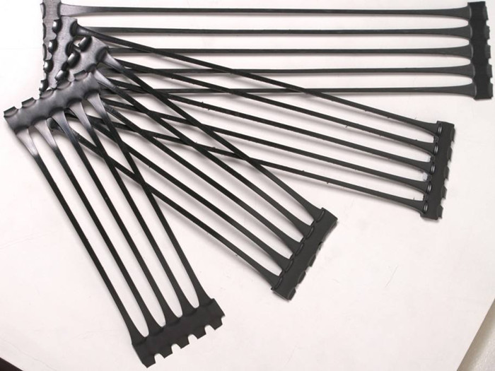 单向拉伸土工格栅是一种以高分子聚合物为主要原料,加入一定的防紫外线、抗老化助剂,经过单向拉伸使原来分布散乱的链形分子重新定向排列呈线性状态,经挤出压成薄板再冲规则孔网,然后纵向拉伸而成的高强度土工材料。这种过程中使高分子成定向线性状态并形成分布均匀、节点强度高的长椭圆形网状整体性结构。此种结构具有相当高的拉伸强度和拉伸模量,抗拉强度达到100-200Mpa,接近低碳钢的水平,大大优于传统的或现有的加筋材料,给土壤提供了理想的力的承担和扩散的连锁系统。该产品拉伸强度大(>150Mpa),适应各种土壤,是目前广为采用的加筋加固材料。